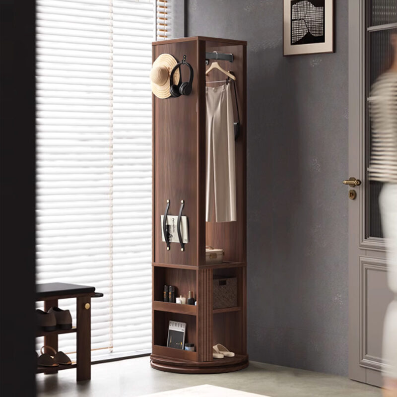 Rotating Coat Rack with Hooks, Shelves & Hanging Rod