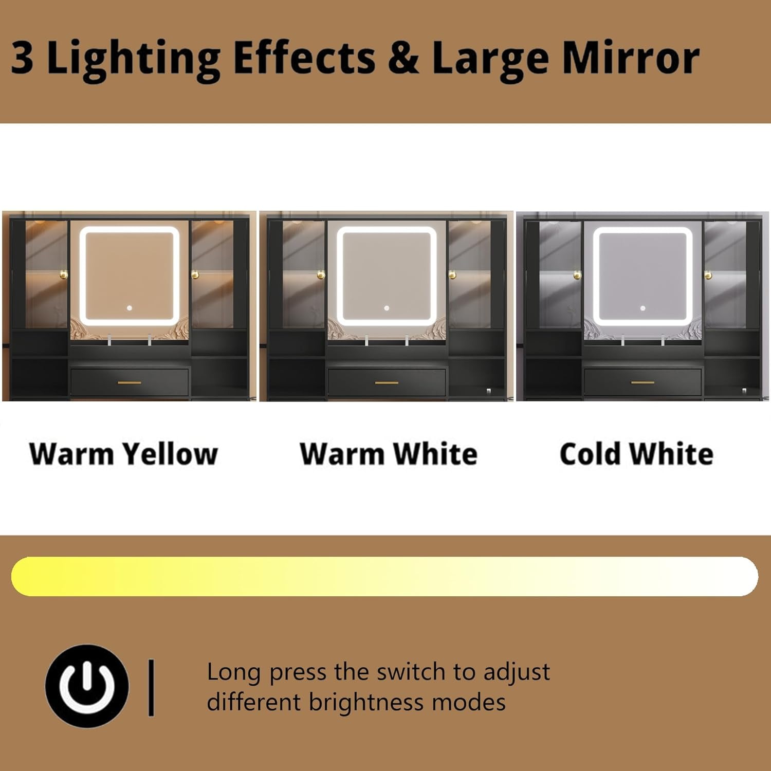 Above all, this makeup vanity brings light, capacity, and a polished studio look every day.