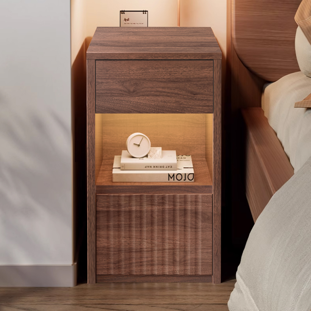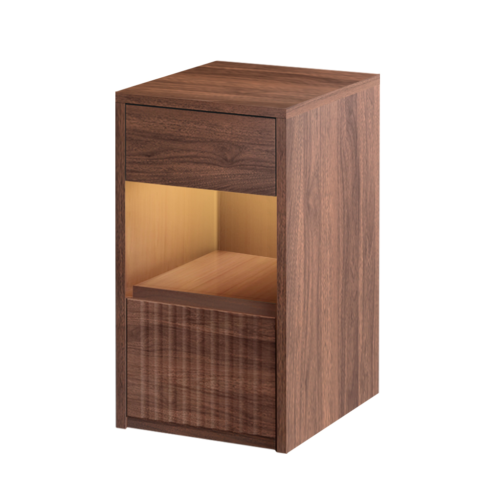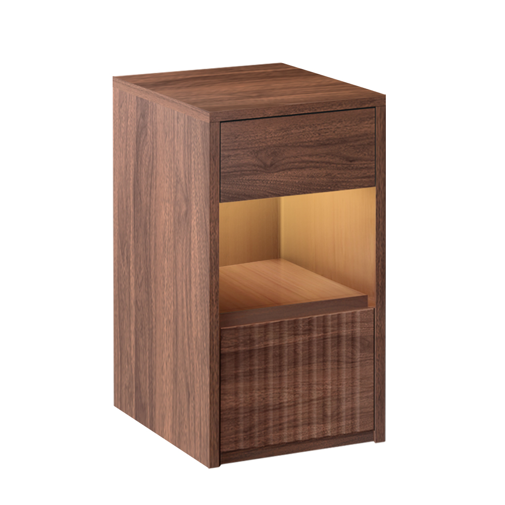This end table with drawers and LED adds order and a calm glow to the living room.