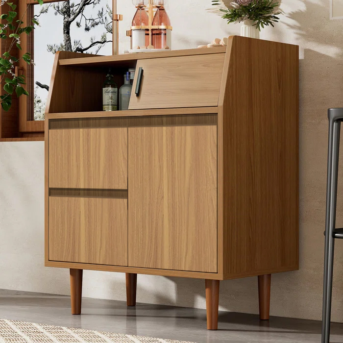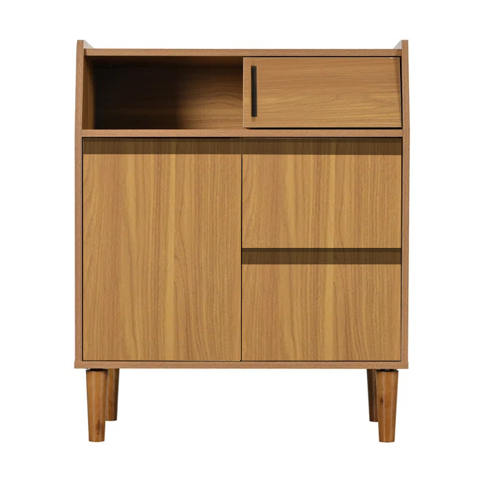 Meet the tidy, do-everything entryway sideboard that delivers display, stash and style in one slim piece. The warm oak finish and tapered mid-century legs lift the cabinet visually, so small rooms feel lighter and easier to clean beneath.