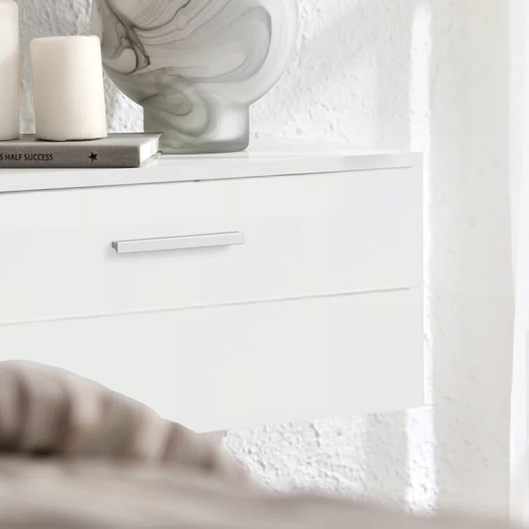 Give your bedroom a lighter, calmer look with this wall-mounted floating nightstand. Because the cabinet is anchored to the wall, the floor remains open for robot vacuums and easy mopping, and the bedside instantly feels more spacious—perfect for compact rooms, loft beds and minimalist setups.
