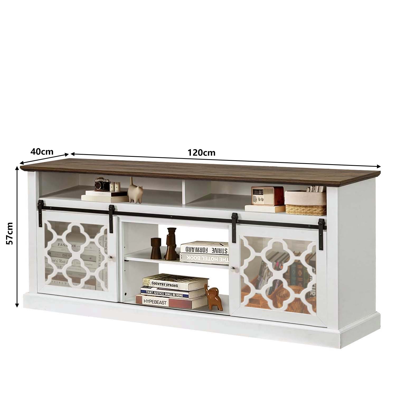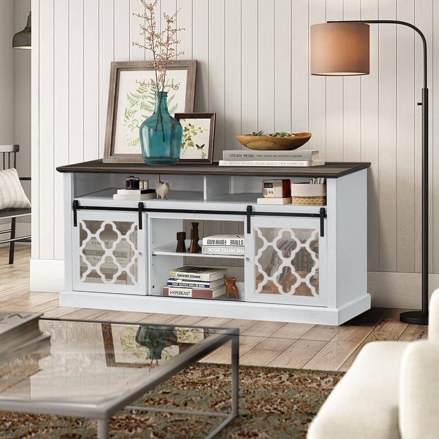 Farmhouse Barn Door TV Stand with Sliding Doors