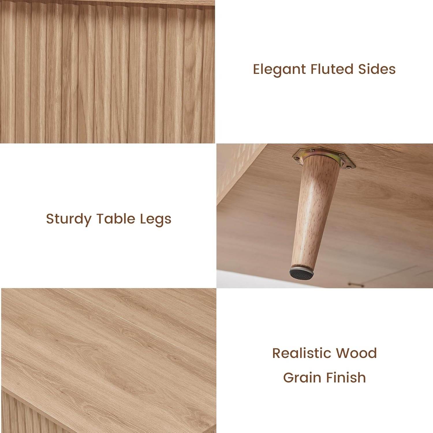 - Easy-clean oak finish; softly rounded corners; floor-safe pads