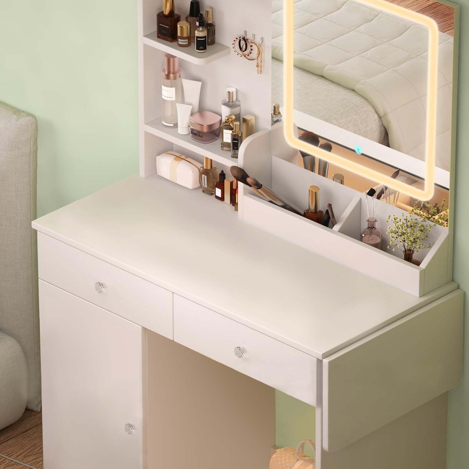 Vanity Table with Lighted Mirror & Hutch Shelves